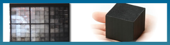 竹は炭化すると、素材の組織である無数の小さな穴(多孔)がそのまま残ります。多孔部分の内側には凹凸があり、この部分で吸着性を発揮します。チクノキューブの最大の特徴はなんといっても『ハニカム構造』と呼ばれる蜂の巣状の構造です。