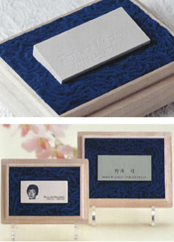 プレート表面には、お名前・出生~死亡年月日・写真などが彫刻されます。裏面にイラストや思いを込めたメッセージ等、故人を偲ぶ自由なデザインを施すことも可能です。
