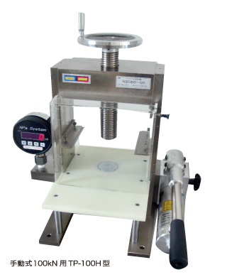 角形コンパクト設計でクリーン性を配慮!! 標準装備:デジタル荷重計、アクリル製安全カバー 高性能アルミポンプ・プレスフレーム:電解ニッケルメッキ仕上げ